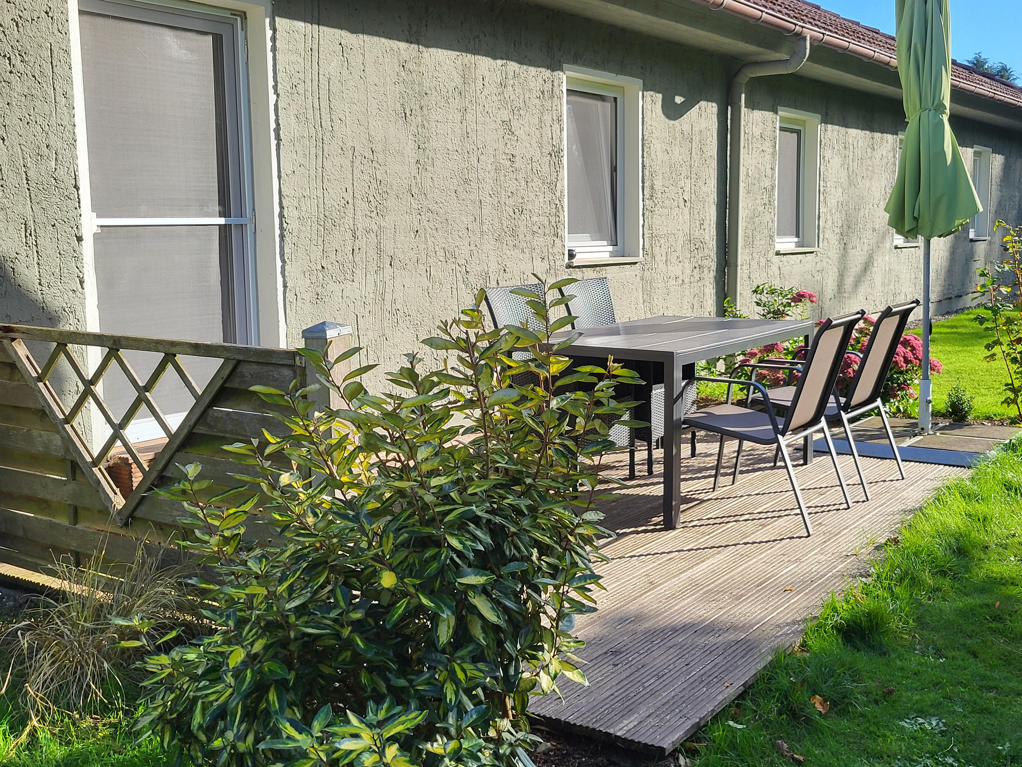 44 qm ebenerdig mit wunderschönem Blick in den Garten, großer Flur mit Garderobe, Schlafsofa zur Aufbettung für zwei Personen, kleine eigene Terrasse